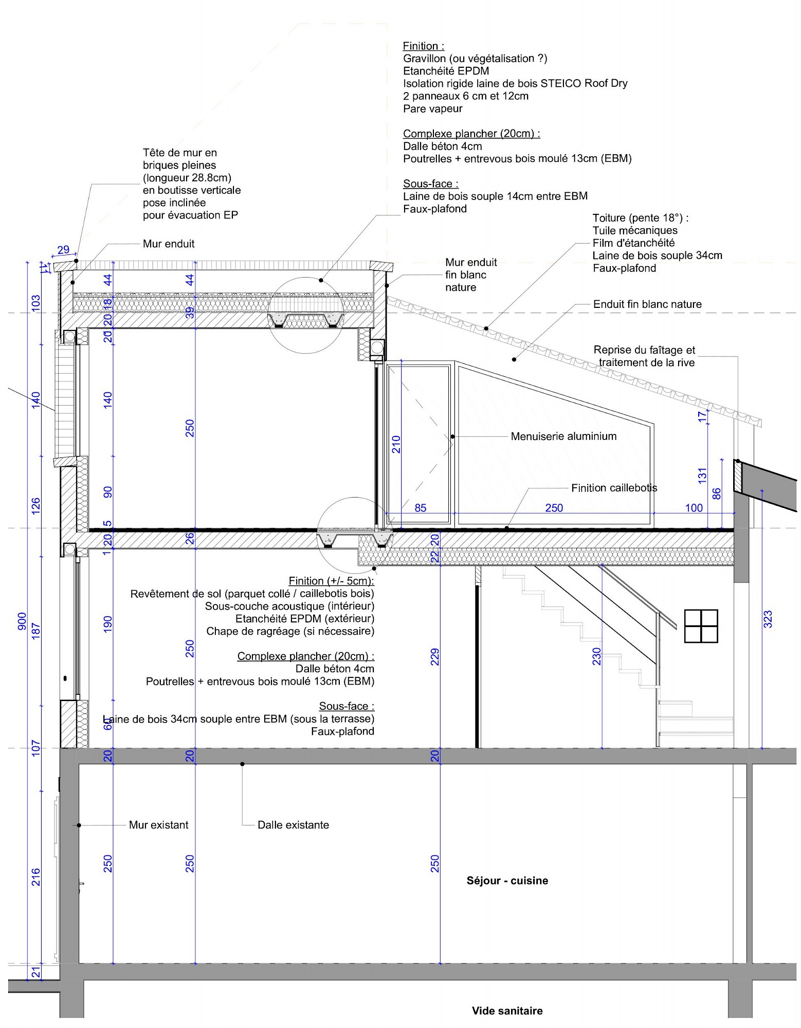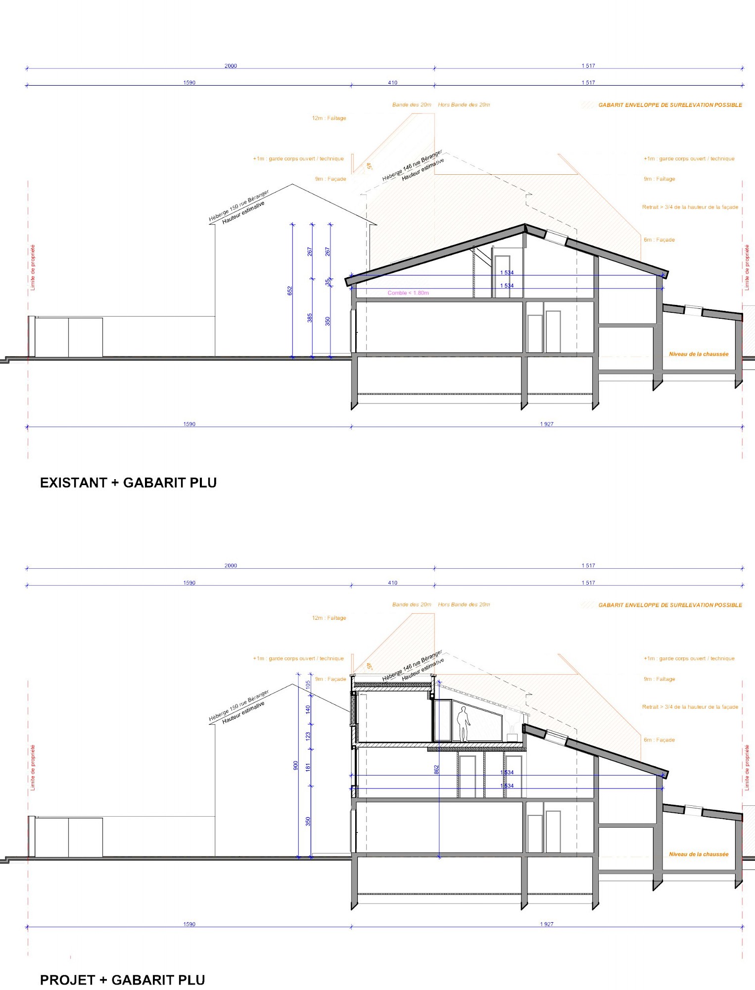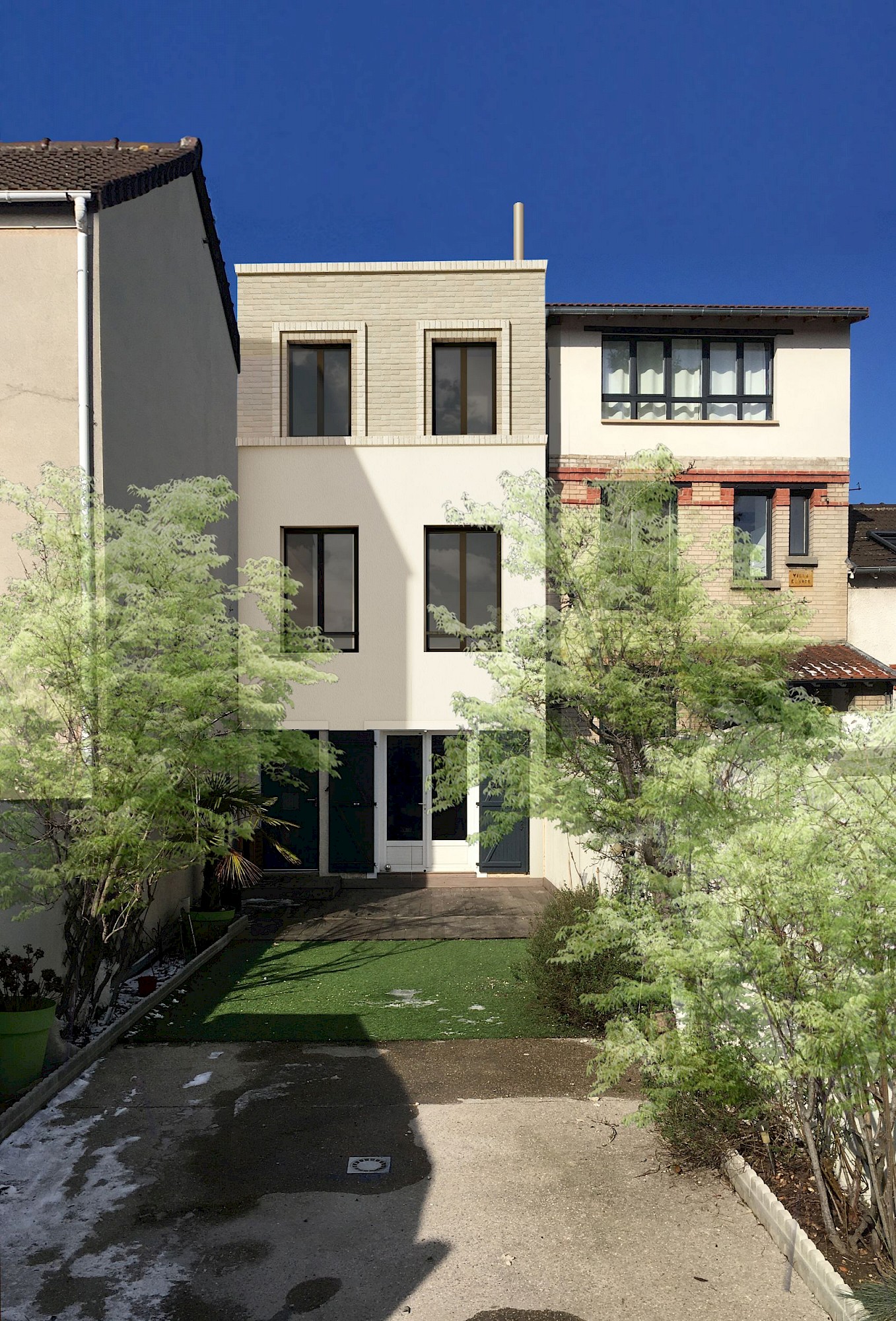 - À proposSurélévation d’une maison de ville afin d’agrandir le R+1 sous combles existant (réagencement), et création d’un R+2 comprenant une chambre et une terrasse tropézienne