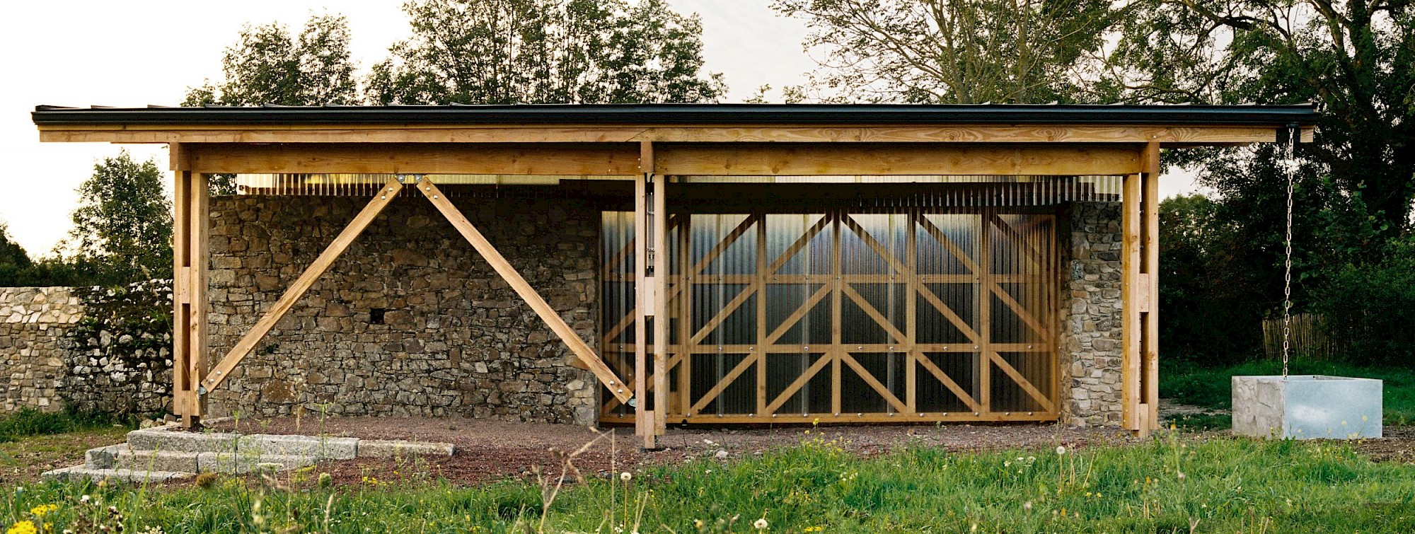Dans le Parc Naturel de Pirou Le Jargon des Oïes, la réhabilitation d’une ruine en pierres et l’intégration en son sein d’une construction en structure bois ont permis la création d’un local multi-usage avec terrasse couverte (stockage, activités, espace buvette, etc.). Projet Primé aux Victoires de l’investissement local 2024