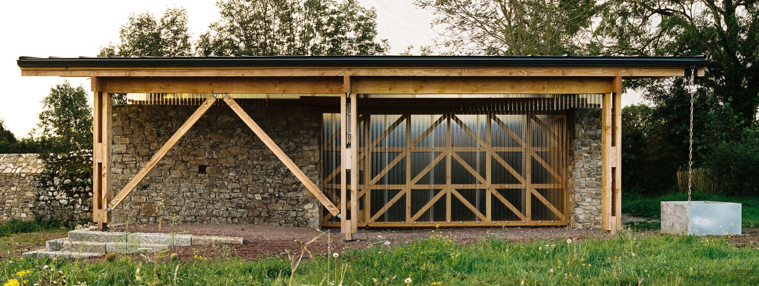 Dans le Parc Naturel de Pirou Le Jargon des Oïes, la réhabilitation d’une ruine en pierres et l’intégration en son sein d’une construction en structure bois ont permis la création d’un local multi-usage avec terrasse couverte (stockage, activités, espace buvette, etc.). Projet Primé aux Victoires de l’investissement local 2024
