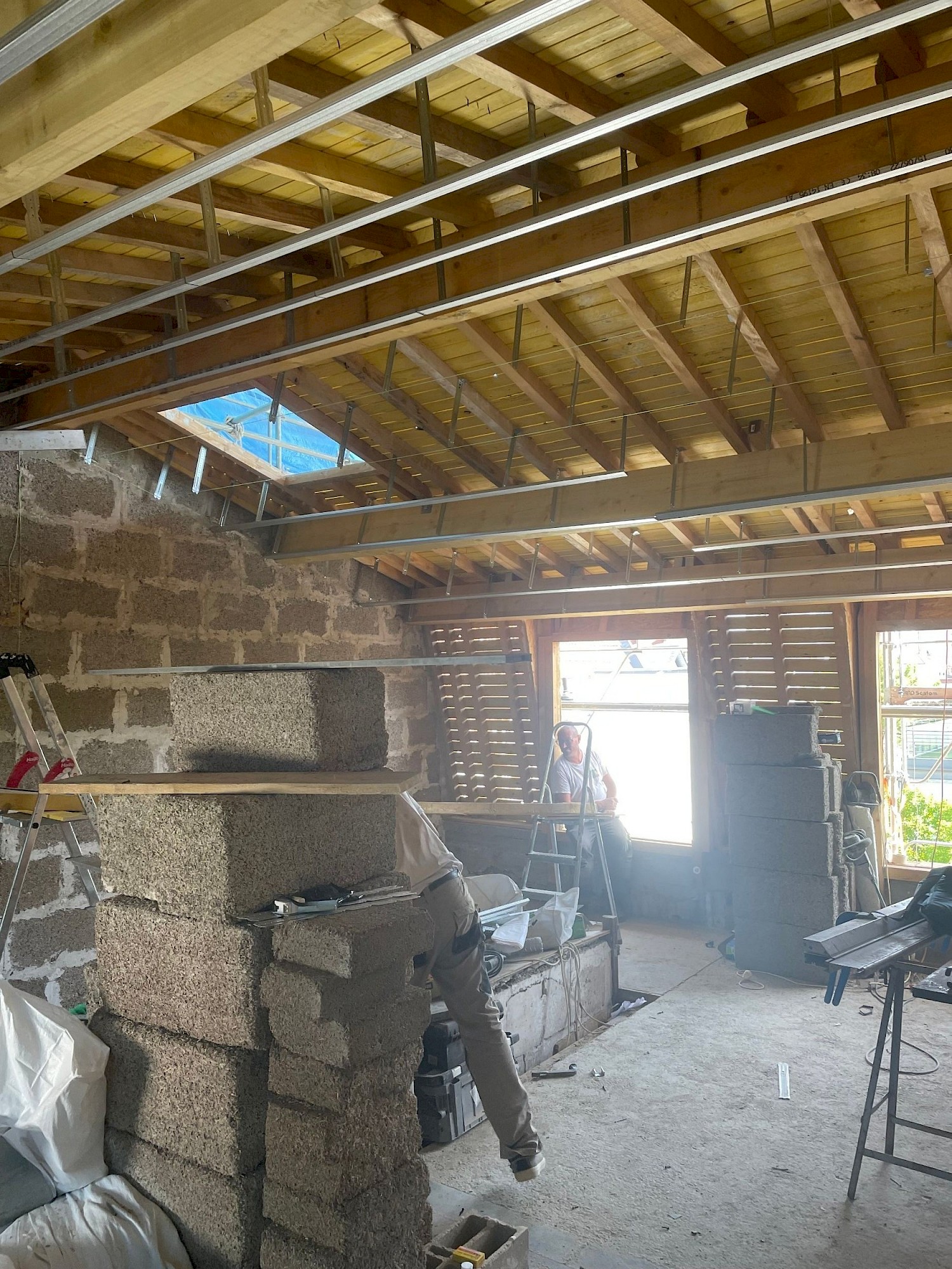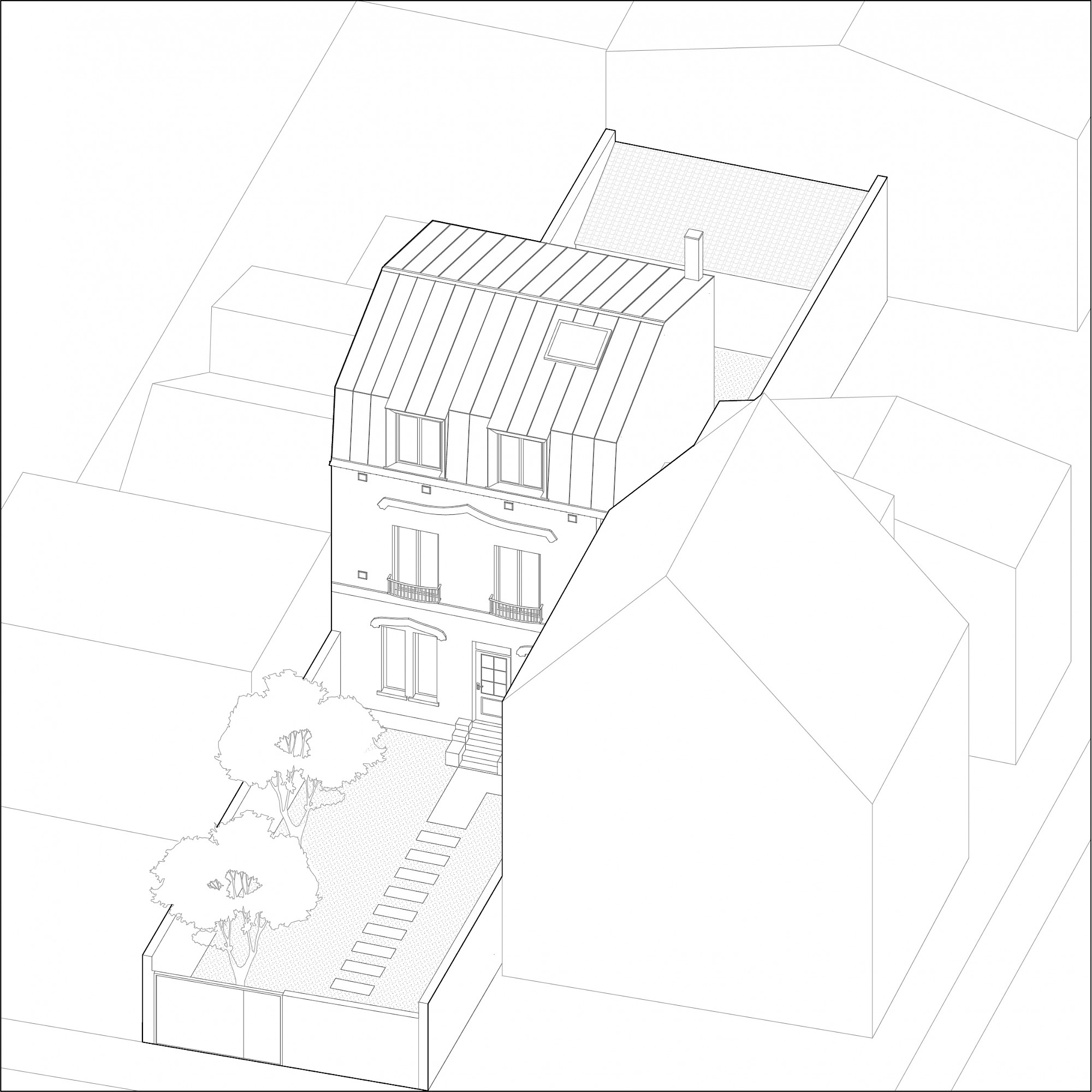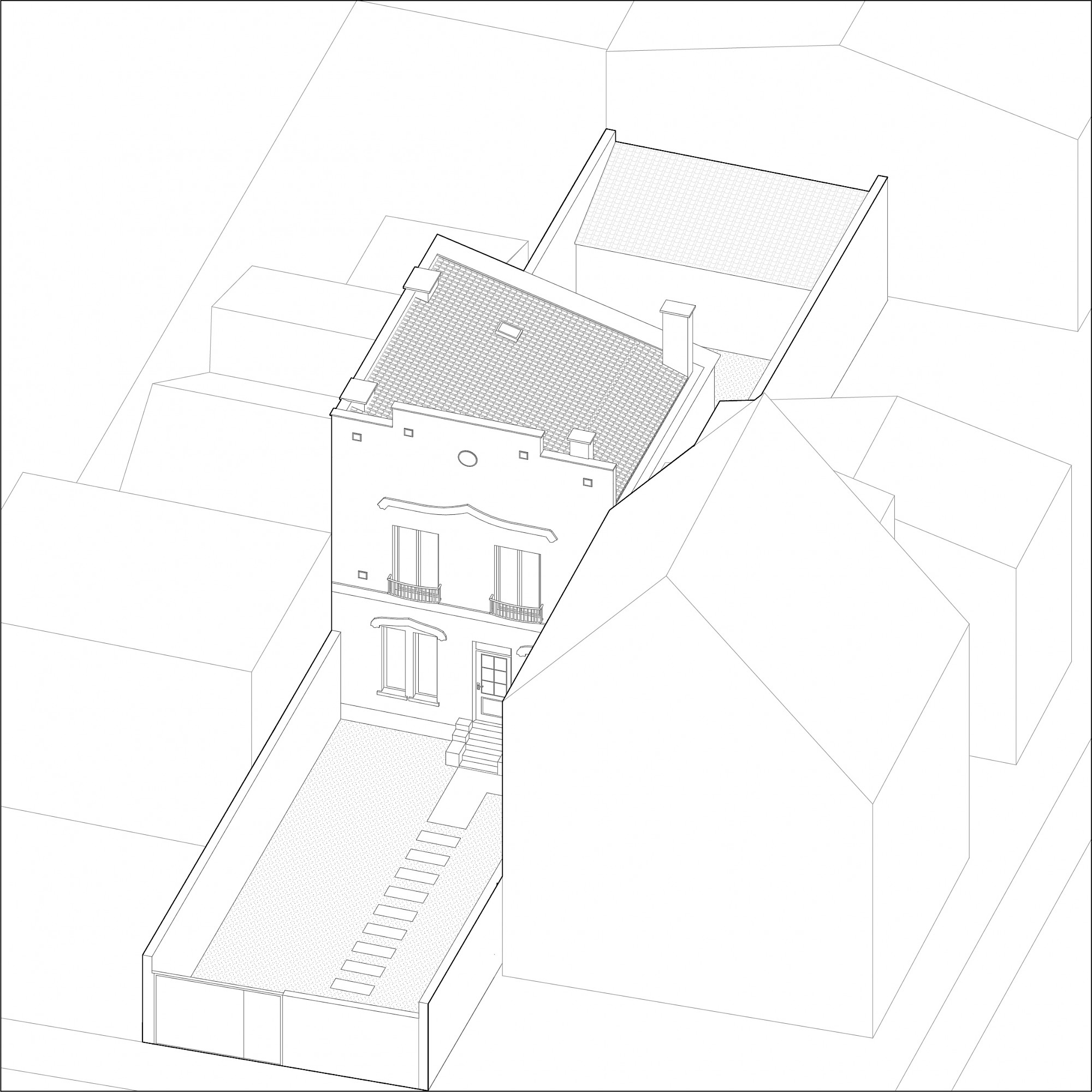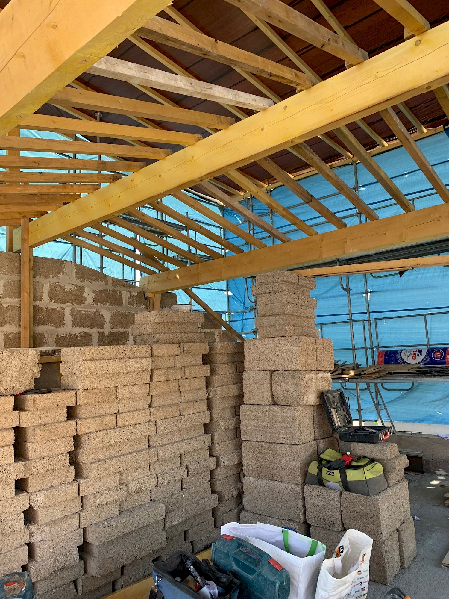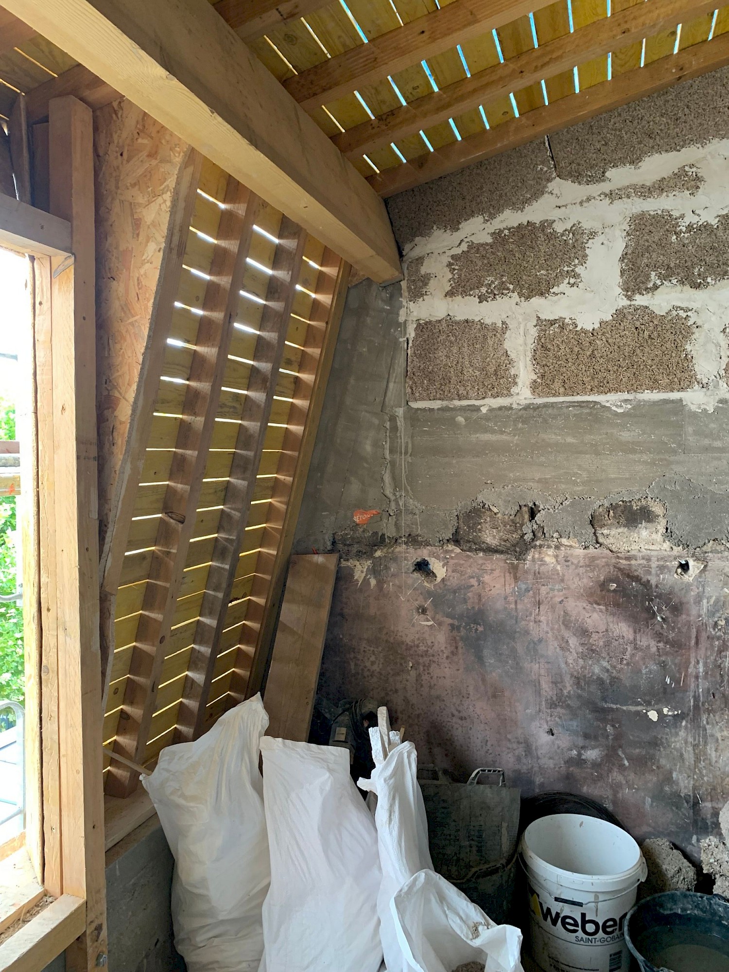 - À proposSurélévation d’une maison de ville par ajout d’un étage. Construction en blocs de béton de chanvre et charpente bois, isolation bio-sourcée. Chantier en milieu occupé.