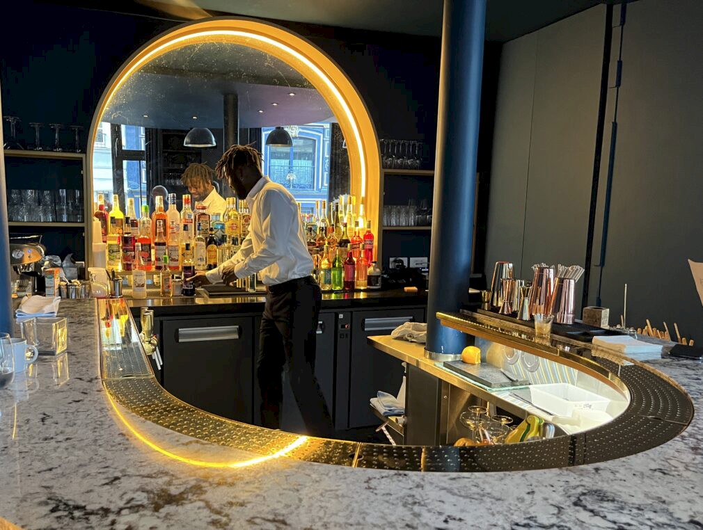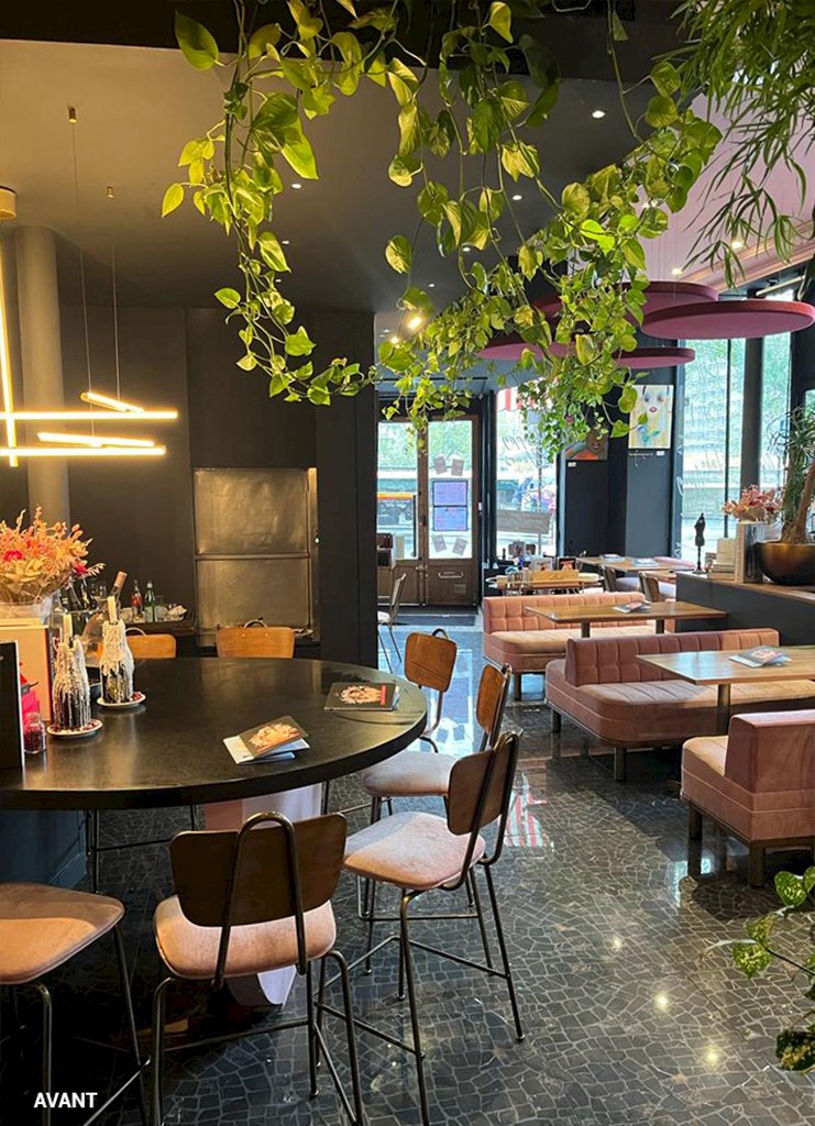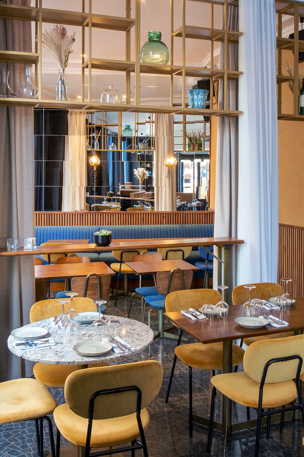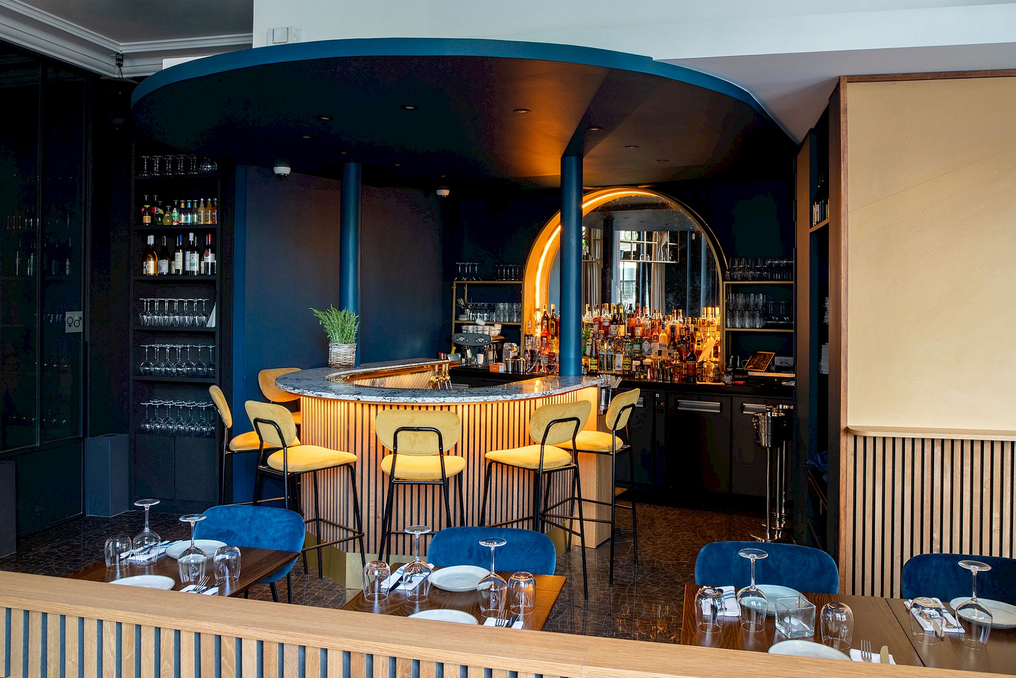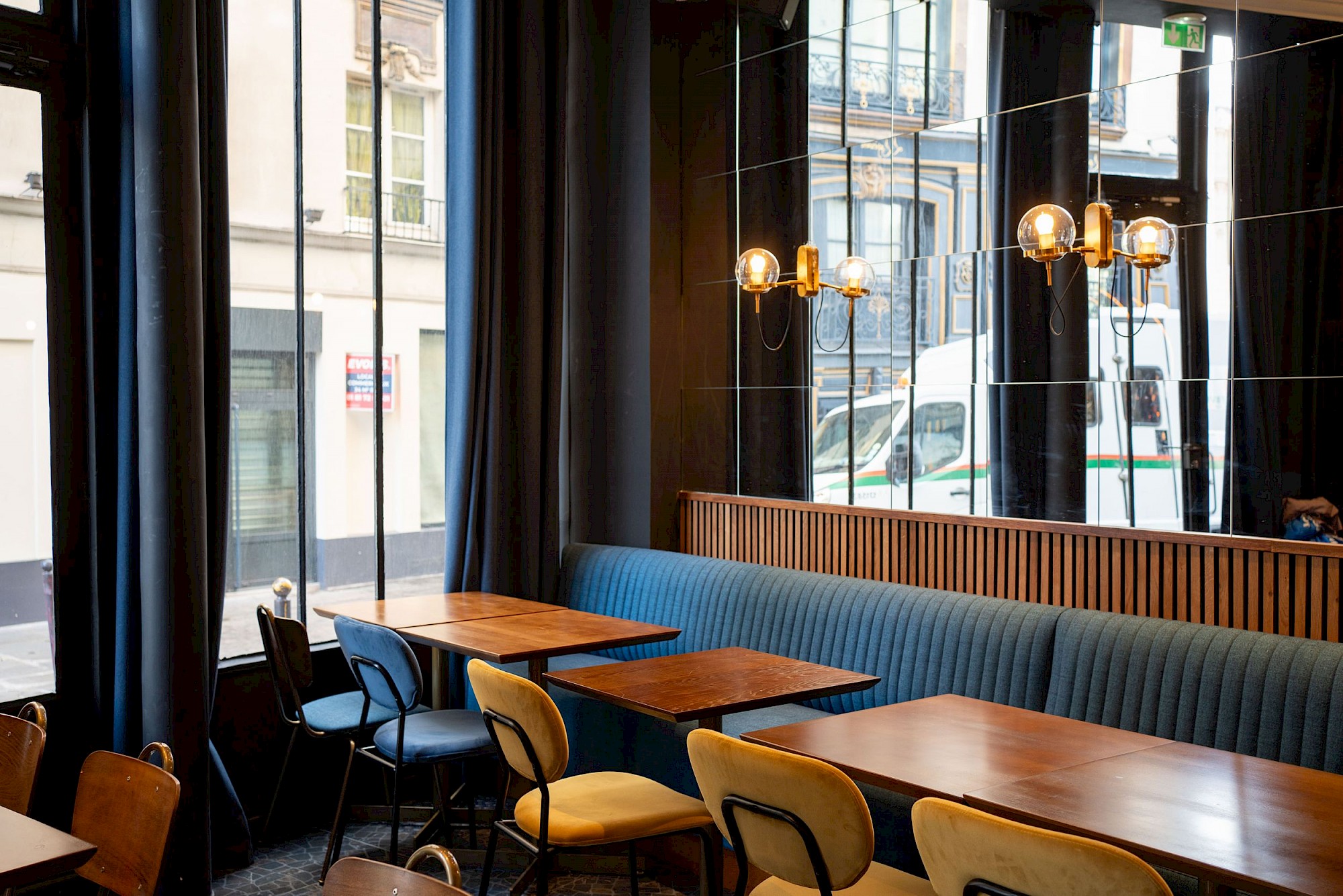 - À proposRénovation d’un restaurant avec agencement sur mesure : Création de serrurerie, menuiserie, tapisserie, tables, banquettes et bar sur mesure. Réemploi de banquettes, tables et chaises existantes (modifiées, rénovées, retapissées). Revêtements muraux enduits de terre du Grand Paris. Lampes en papier réalisées à la main par Antoine Becognée.