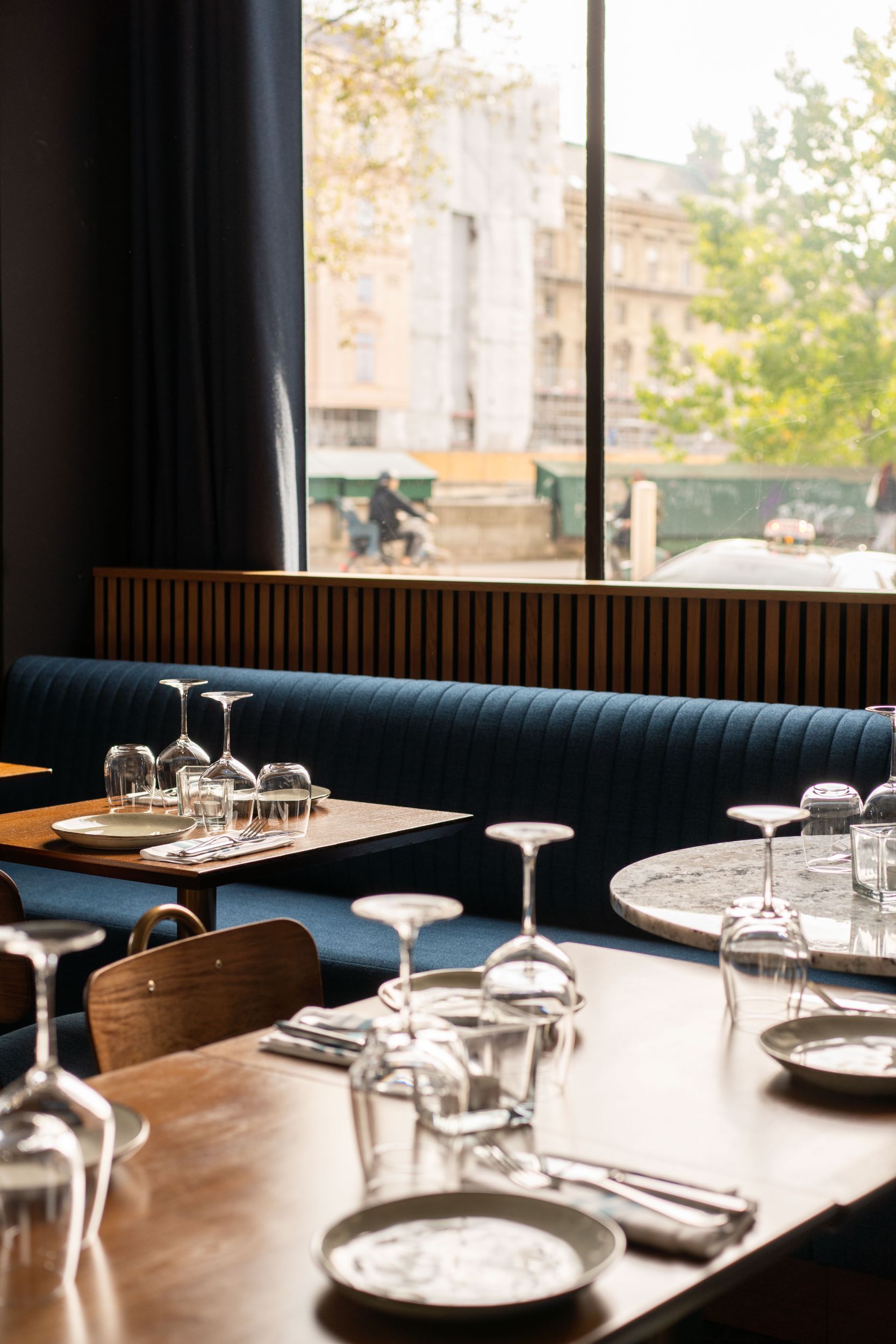 - À proposRénovation d’un restaurant avec agencement sur mesure : Création de serrurerie, menuiserie, tapisserie, tables, banquettes et bar sur mesure. Réemploi de banquettes, tables et chaises existantes (modifiées, rénovées, retapissées). Revêtements muraux enduits de terre du Grand Paris. Lampes en papier réalisées à la main par Antoine Becognée.